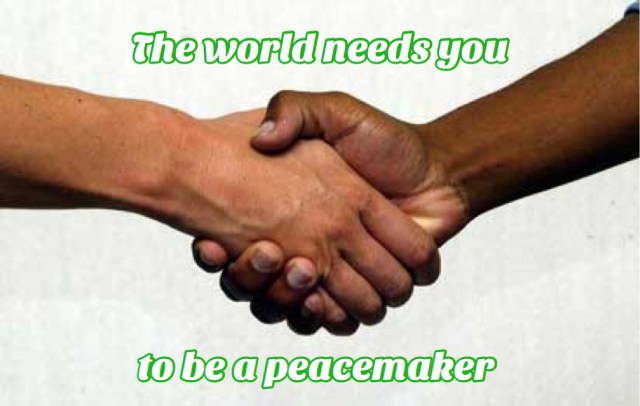 So this is an invitation, right now, to decide to be a peacemaker. Consciously decide to stop entering into conflict with other human beings, both in the inner dialogues in your mind, and in your words and interactions in the real (and digital) world. Help to resolve differences. Build bridges. Be patient with people and forgive them. Be an agent of reconciliation.
